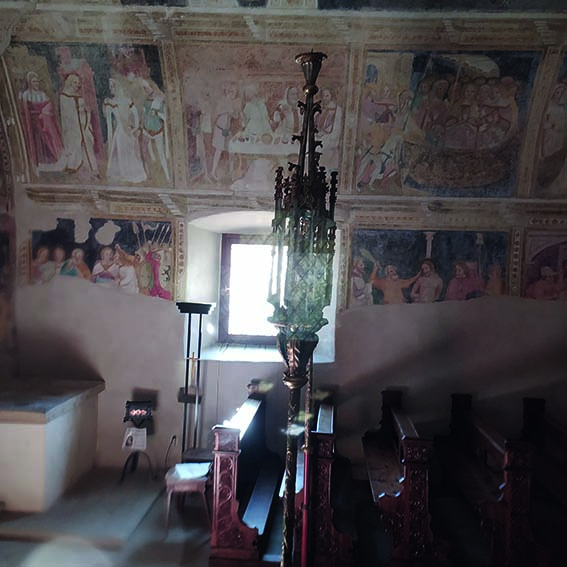 Wir jedoch folgen unserem Steig, Mark. 5 und dem Lauf des Wassers. Wir müssen über eine Brücke, die sich um einen Felsen windet. Der Steig führt direkt bergab, doch wir gehen wenige Schritte geradeaus zu einer Felswand. Eine originelle Gedenktafel für eine verunglückte Erika hat unsere Aufmerksamkeit erregt. Wenige Schritte zurück und nun direkt dem sprudelnden und schäumenden Wasser entlang, zweimal durch ein Gatter und bald schon stehen wir an der Hauptstraße. Wir könnten an der nächsten Haltestelle auf den Bus warten, doch da wir noch genügend Zeit haben, nehmen wir den Weg, der eine Wiese quer durchschneidet und kommen direkt zu dem sehr schön angelegten Weiher hinter der Kirche. Beim Tourismus Büro steigen wir glücklich und dankbar wieder in den Bus.