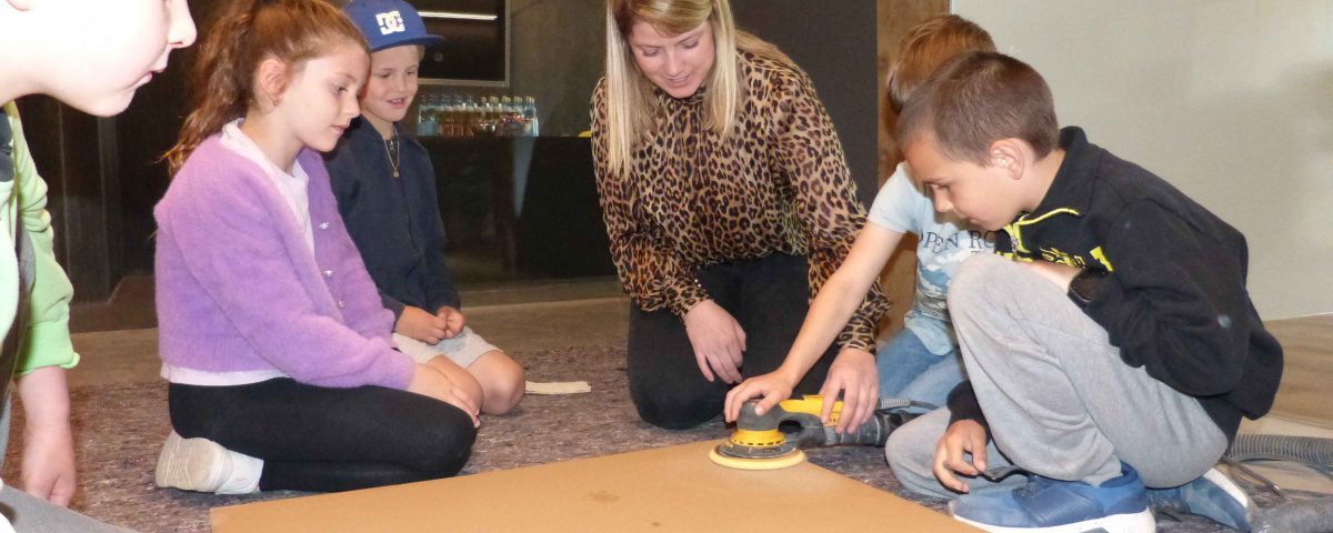Gemeinsam mit dem Malerbetrieb Spornberger aus Staben wurden den Kindern unvergessliche Einblicke in den Beruf des Malers ermöglicht. Mit spielerischen und abwechslungsreichen Aktivitäten sammelten die Schüler viele Informationen über dieses Handwerk. Bei der Firma Spornberger konnten die Kinder mit verschiedenen Werkzeugen arbeiten und lernten die Arbeitsschritte des Tapezierens kennen. Dabei durfte jedes Kind ein selbst angefertigtes Werkstück als Erinnerung mit nach Hause nehmen.