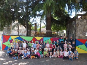 Dank der Zusammenarbeit mit der Berufsschule Schlanders und der Unterstützung der Firma Spornberger konnten die Kinder schließlich eine Innen- und Außenfassade des Schulhauses bunt gestalten. Unter der professionellen Leitung des Lehrers Gabriel Karnutsch und der beiden Berufsschüler Lorenz und Mirko durften die Schüler bei allen Arbeitsschritten mitarbeiten: vom Abkleben, Grundieren und Malen bis hin zur Fertigstellung. Das Ergebnis des Projekts spricht für sich: Die Wände erstrahlen in wunderschönen Farben und dekorativen Mustern, die von den kleinen Künstlern geschaffen wurden.