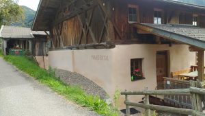 Beim Gasthaus Moar und dem neuen, leuchtend gelben Hinweisschild: „Marterloch“ beginnt unsere Wanderung.