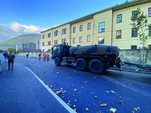 Wir treffen ihn heute direkt vor Ort. An der Einfahrt zur Gampenstraße findet ein Lokalaugenschein mit Gemeindetechnikern und Militärvertretern statt. Die Gemeinde arbeitet hier an der Verschönerung der Straßenzufahrt – mit neuem Radweg, Begrünung und zwei Bushaltestellen. Für den Praxistest stehen zwei Militärlastwagen bereit: Sie sollen prüfen, ob die neue Engstelle für den Schwerverkehr tauglich ist. Was sofort auffällt: Der neue Gehweg ist hier deutlich breiter angelegt als beim jüngsten Schulneubau in der Handwerkerzone. Während dort der Gehweg mit 1,25 Metern unter der Norm liegt, misst er an der Gampenstraße über zwei Meter – eine Breite, die selbst Militärfahrern Feingefühl abverlangt. Der Lokalaugenschein hätte eigentlich schon vor dem Asphaltieren stattfinden sollen. Nun ist die Straße bereits fertiggestellt, Markierungen werden aufgetragen. Beim Test kommen die Lastwagen im Schneckentempo gerade noch nebeneinander vorbei – dennoch einigt man sich darauf, den Gehweg teilweise zurückzusetzen. „Eine Maßnahme, die man hätte vermeiden können“, kommentieren zwei Zonenvertreter. Die Straßenverschönerung ist ein Erbe der vorletzten Stadtregierung – und eines jener Projekte, die man in Untermais wohl gerne frühzeitiger und breiter abgestimmt gesehen hätte. Bei einem anschließenden Kaffee in der Handwerkerzone erzählt uns Klaus Götsch mehr. Ein wichtiges Anliegen für die Untermaiser sei es, bei den anliegenden Projekten vor Ort ein Mitspracherecht zu haben, vor allem für jene, die die lokalen Gegebenheiten besser kennen.